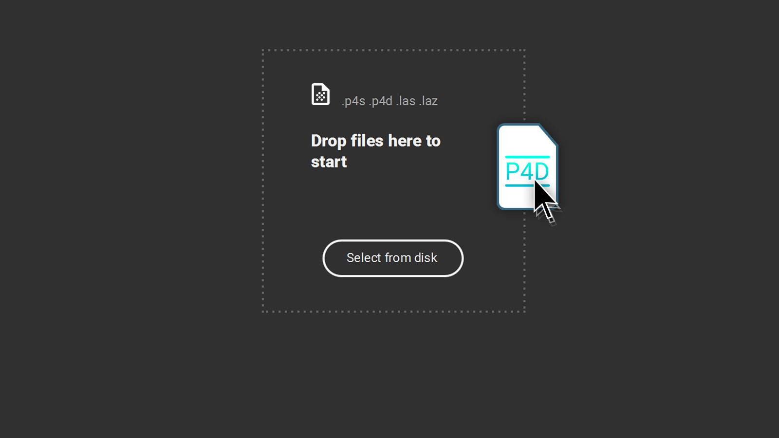 Cree una nube de puntos a partir de imágenes en PIX4Dcloud, PIX4Dmapper o PIX4Dmatic, y arrastre y suelte el archivo .p4d o .p4m en PIX4Dsurvey.